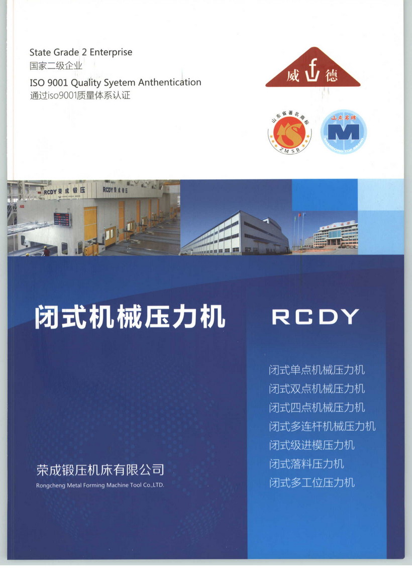 榮成鍛壓機床有限公司始建于1958年,是生產(chǎn)鍛壓設(shè)備的專業(yè)工廠,國家二級企業(yè)。工廠占地27萬平方米,其中廠房等建筑面積12.8萬平方米;共有員工1000余人,其中工程技術(shù)人員與質(zhì)量專業(yè)人員132人;擁有主要設(shè)備400余臺(套),其中精、大、稀設(shè)備60余臺(套)。公司于2000年即通過了質(zhì)量、職業(yè)健康安全和環(huán)境三大管理體系認(rèn)證。連續(xù)27年被評為山東省“守合同、重信用”企業(yè)。公司先后被省市相關(guān)部門授予省級先進企業(yè)、山東省認(rèn)定企業(yè)技術(shù)中心、山東省高新技術(shù)企業(yè)、山東省塑性成型加工機械工程技術(shù)研究中心、AAA標(biāo)準(zhǔn)化良好行為企業(yè)、省計量保證確認(rèn)合格企業(yè)、威海市鍛壓機械工程技術(shù)研究中心、納稅先進企業(yè)、五星級職工之家等榮譽稱號,“威德”商標(biāo)是山東省著名商標(biāo),“威德”牌壓力機是山東省名牌產(chǎn)品。公司現(xiàn)可生產(chǎn)開式全系列,閉式包括單點、雙點、四點、多連桿、多工位、級進模等8大系列300多個品種的鍛壓設(shè)備,技術(shù)水平都達到了當(dāng)今國內(nèi)先進或領(lǐng)先水平,產(chǎn)品在國內(nèi)外市場享有盛譽。公司現(xiàn)為國內(nèi)主要鍛壓設(shè)備制造企業(yè)之一。