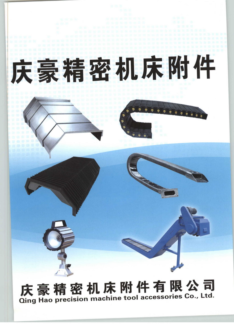 慶豪精密機床附件有限公司是專業從事數控機床、機械設備配套產品研發制造與銷售的現代化高新技術企業。自本公司成立以來,一直追求技術不斷提高,產品推陳出新,以滿足客戶需要為己任,通過長期的積累,擁有雄厚的開發、生產、銷售能力,并能根據客戶的特殊要求,設計制造各種規格的機床防護產品。我公司主要產品有:鋼板防護罩、柔性風琴式防護罩、圓桶式、鎧甲式、卷簾式伸縮防護罩、鋁形防護簾、鋼制拖鏈、塑料拖鏈、矩形金屬軟管、DGT導管防護套、恊旋鋼帶護套、機床導軌刮屑板、T型撞塊槽板、可調塑料冷卻管、S78系列機床墊鐵、機床工作燈、操作件等產品。廣泛應用于機床、制藥機械、雕刻機械、木工機械、玻璃機械、食品機械等傳統機械行業,公司的宗旨是以質量贏得客戶,靠誠信贏得市場,可靠的質量,良好的服務,歡迎新老客戶來電來函咨詢。另外,依靠我公司強大的技術團隊,為您提供免費咨詢服務,如您對行業有不解之處,可咨詢我公司。