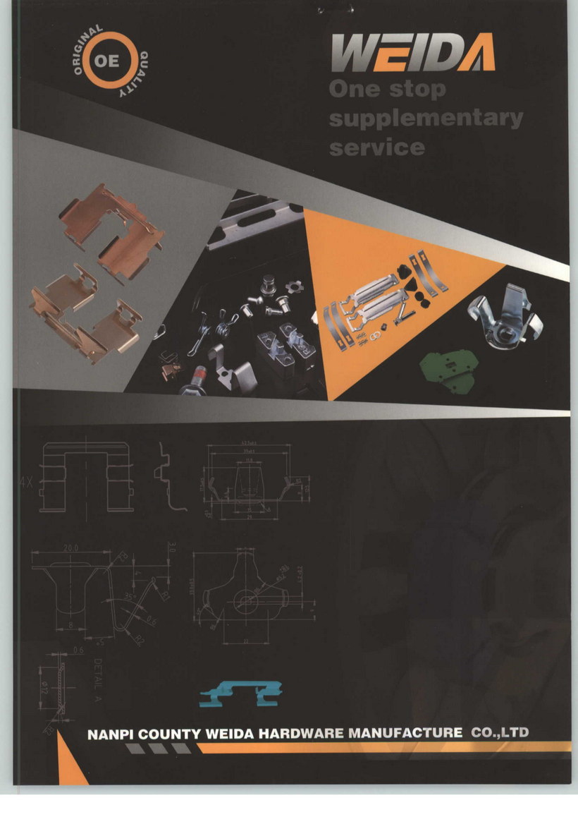 公司從事五金沖壓生產近20年的歷史,注冊資金1050W元,地理位置優越,交通便利,緊鄰104國道、京滬高鐵、公司至北京215KM、天津113KM、濟南210KM、青島500KM。出口港口:天津、青島廠房占地面積20000m2員工200多人,營業額7600W,以每年30%遞增。8-400沖床270臺、100-630T油壓機25臺、180T壓鑄機1臺、自動清洗線一條、1-12MM剪板機4臺、線切割15臺、拋丸機、車床、磨床、萬能銑床、焊等先進設備。產品范圍:以汽車剎車系統:鋼背、導向架、卡簧、報警卡、消音片、大巴修理包、大巴鋼背、拉桿等,產品型號是內國最齊全企業之一,基本已覆蓋國內外所有車型,為剎車片廠家提供一站式配套服務。