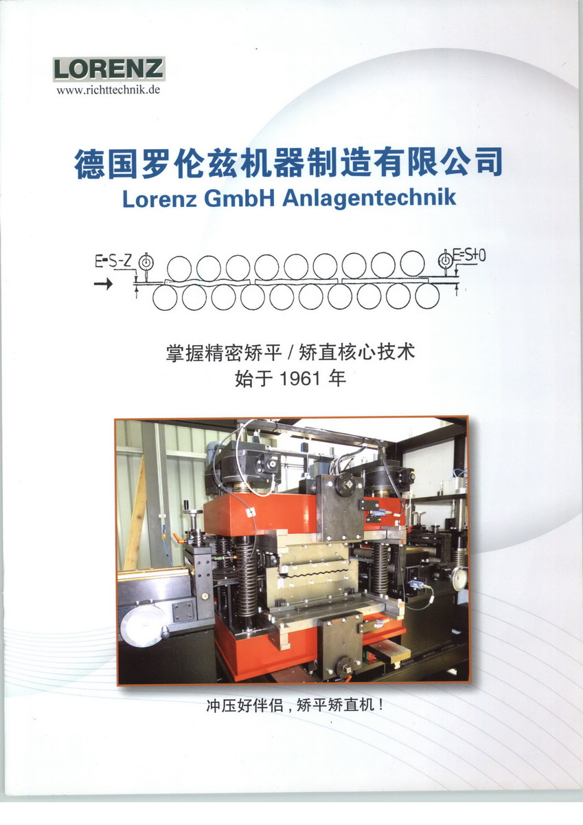 德國羅倫茲機器制造有限公司由H. Lorenz先生創立,專業生產19/21輥精密矯平設備, 9輥矯直裝置, 開卷機和收卷機, 電動輥喂料器和橫向零件進給裝置. 所有設備所需電氣,氣動和液壓控制裝置也有我們自己的特點. 是矯平矯直技術的創始人.公司擁有50多年矯平設備生產和研發經驗. 從1961年開始,H.Lorenz先生就研發板材矯平技術, 并將此技術先后介紹給兩家德國公司, 使這兩家公司開始了矯平設備的生產。